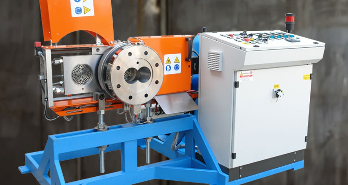 Der Betrieb in Kombination mit einem Schnellwechselhydraulikaggregat ermöglicht den Austausch der Filtersiebe bei laufendem Extruder.